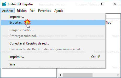 1. Crear copia de seguridad del Editor del Registro de Windows