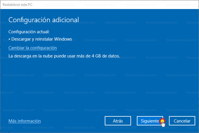Una de las principales ventajas, es que siempre que restauremos se descargara la última versión de Windows 10.